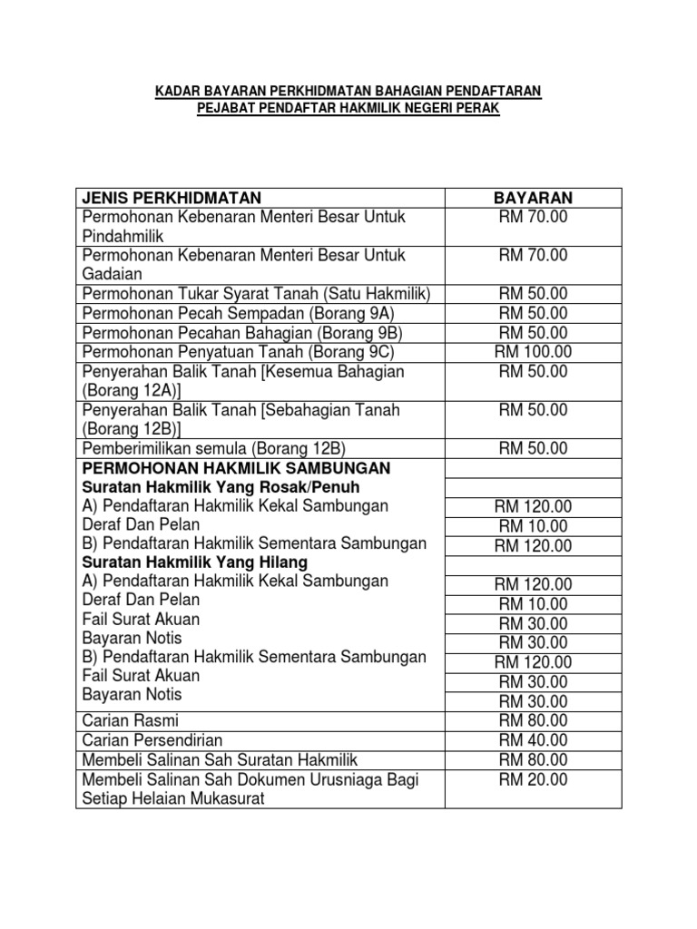 Kadar Bayaran Perkhidmatan Bahagian Pendaftaran Pdf